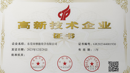 摩能化學設有兩個研發中心、一個化學技術應用中心、一個助劑生產中心和一個營銷中心(廣東苗博新材料有限公司)。通過了GB/T19001-2016 idt ISO9001:2015標準的質量管理體系認證。